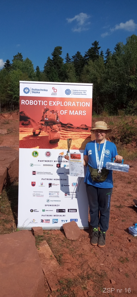 Uczeń klasy 7B Szymon Kciuk zajął 2 miejsce w kategorii klas 7/8 podczas zawodów realizowanych w ramach projektu edukacyjnego „Robotic Exploration of Mars” w Suchedniowie, który odbył się 18 września. Szymon reprezentował tam naszą szkołę, jak widać z sukcesem.