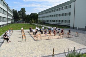 Tegoroczne rozpoczęcie roku szkolnego odbiegało przebiegiem od uroczystości w poprzednich latach. Maseczki, odstęp społeczny, ograniczona ilość gości, którzy mogli uczestniczyć w uroczystości. Mimo tego uśmiech nie schodził z twarzy uczniów, którzy po długim okresie odosobnienia mogli się znowu spotkać w Dalej …