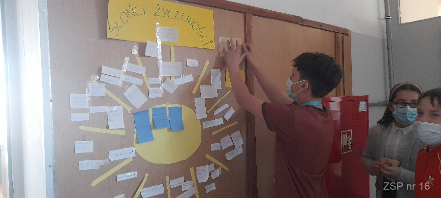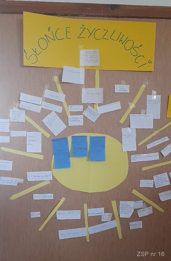 Listopad to miesiąc dedykowany życzliwości. Na na zajęciach z wychowawcą każda klasa rozmawiała o tym, jak być życzliwym i tworzyła ciepłe pozdrowienia, które ozdobiły słońce życzliwości i rozjaśniły listopadowe dni.