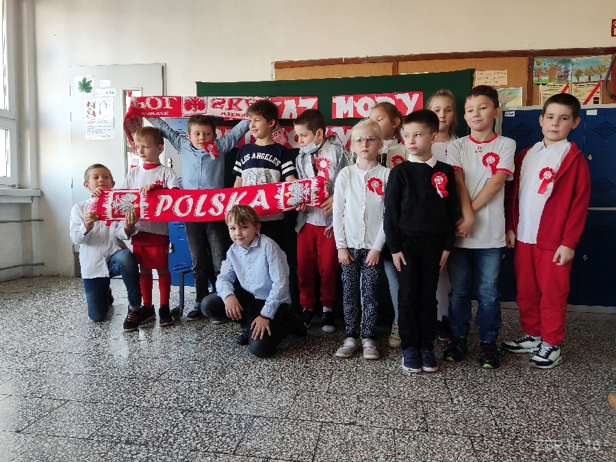 Pamiętaliśmy również o wspólnym odśpiewaniu hymnu o 11:11 i choć trudne czasy nie pozwoliły się nam wspólnie zgromadzić, to hymn rozbrzmiewał w całym budynku naszej szkoły.