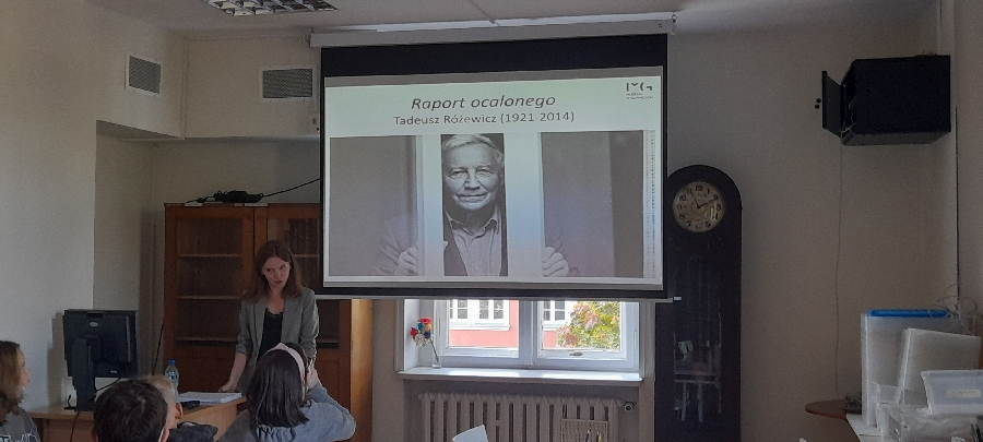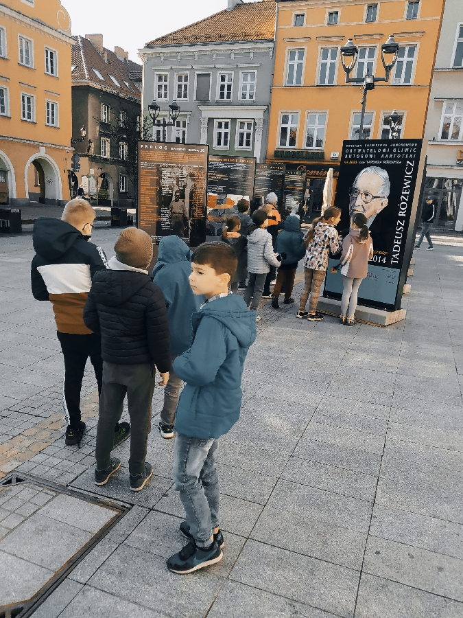 Uczniowie spacerowali po gliwickim Rynku podziwiając plansze przybliżające twórczość i zainteresowania poety. Wystawie towarzyszyły lekcje, w których wzięliśmy udział.