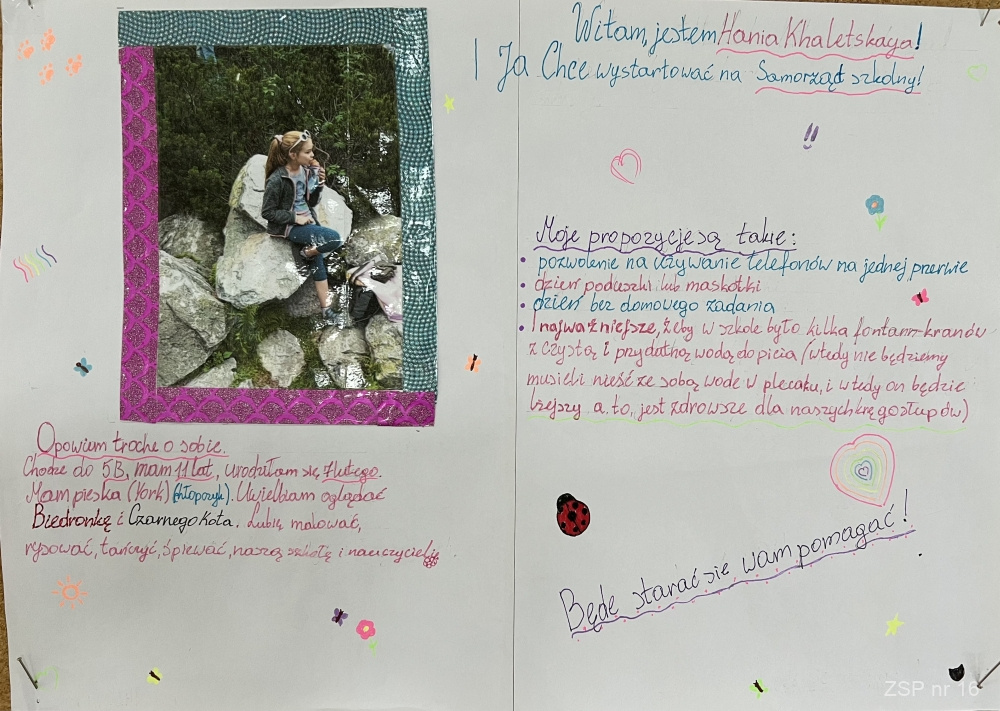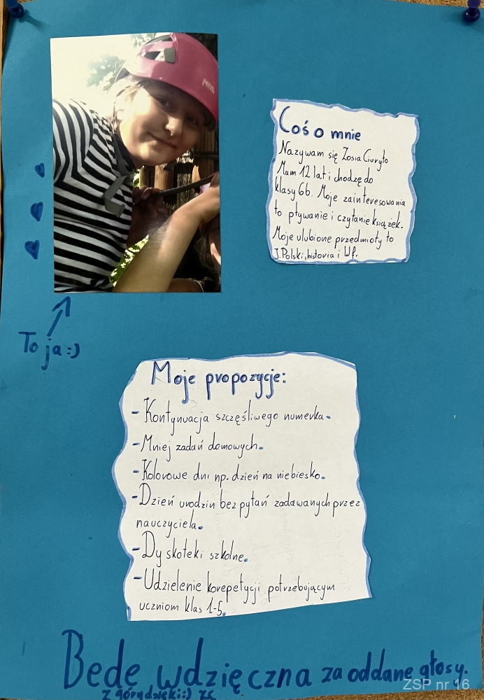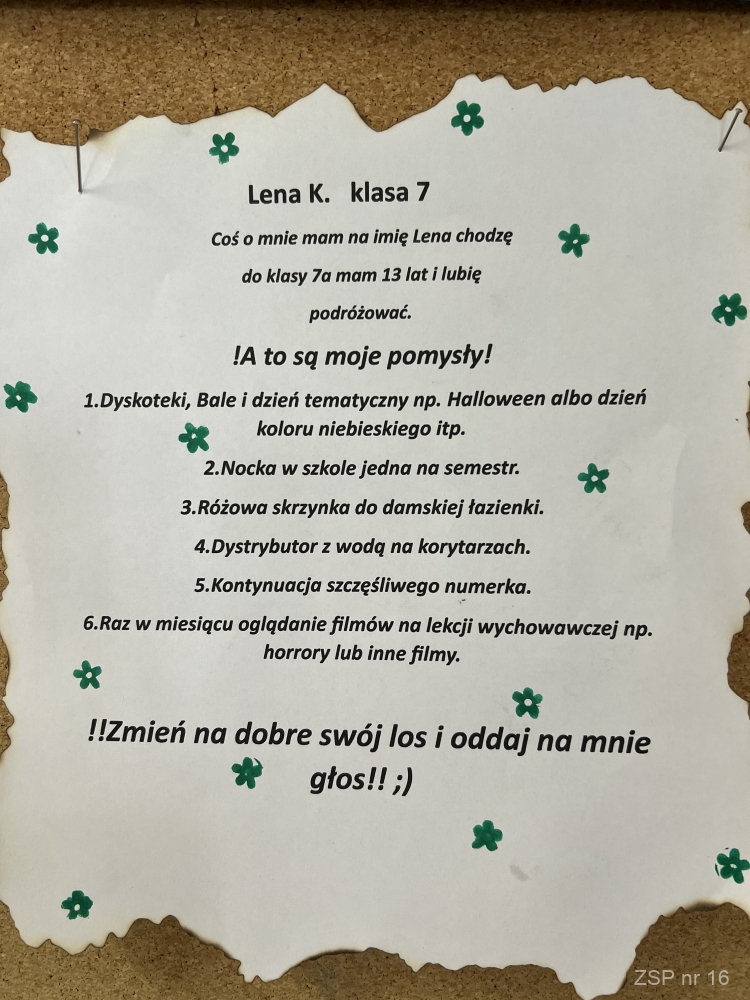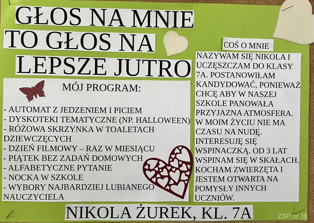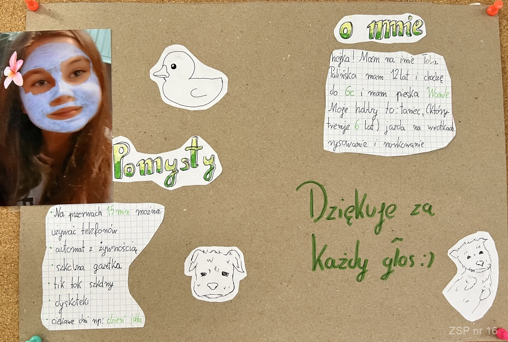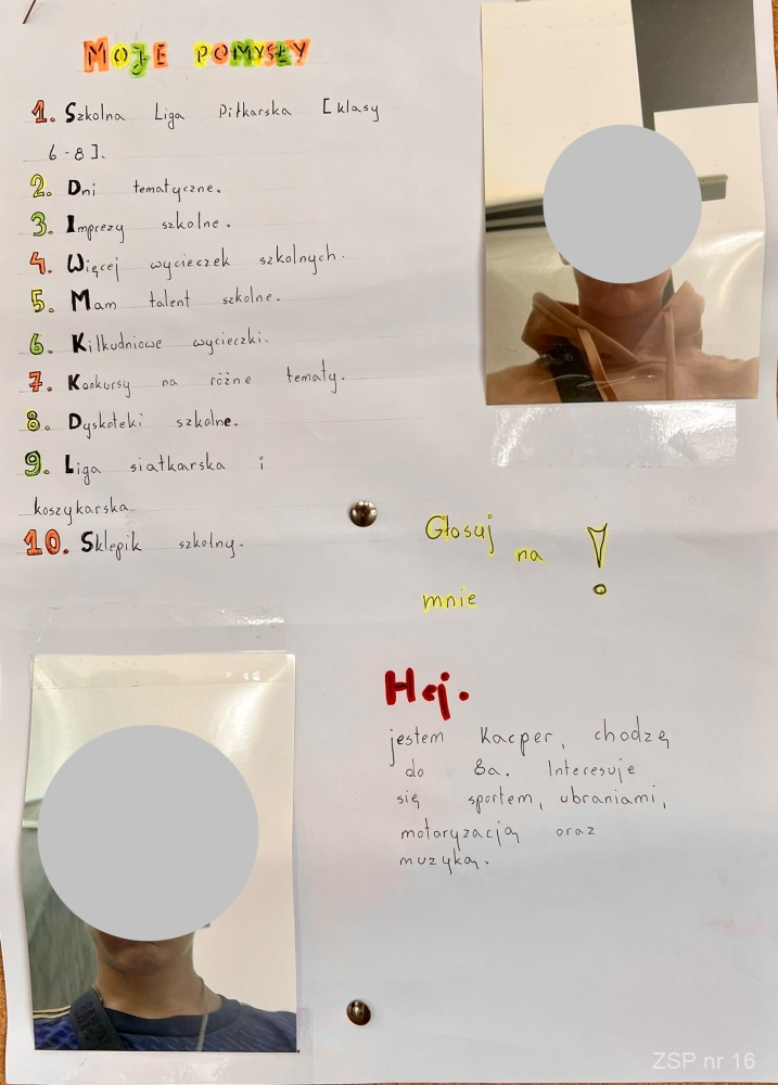 Kandydaci na zaszczytne funkcje (przewodniczącego, vice oraz sekretarza) przedstawili swoje programy wyborcze, w których zawarli najważniejsze postulaty uczniowskie. Inwencja młodych zaskakuje świeżością i niekonwencjonalnym podejściem do tematu. W pełni demokratyczne rozstrzygnięcie odbędzie się 2.10.2023 roku.