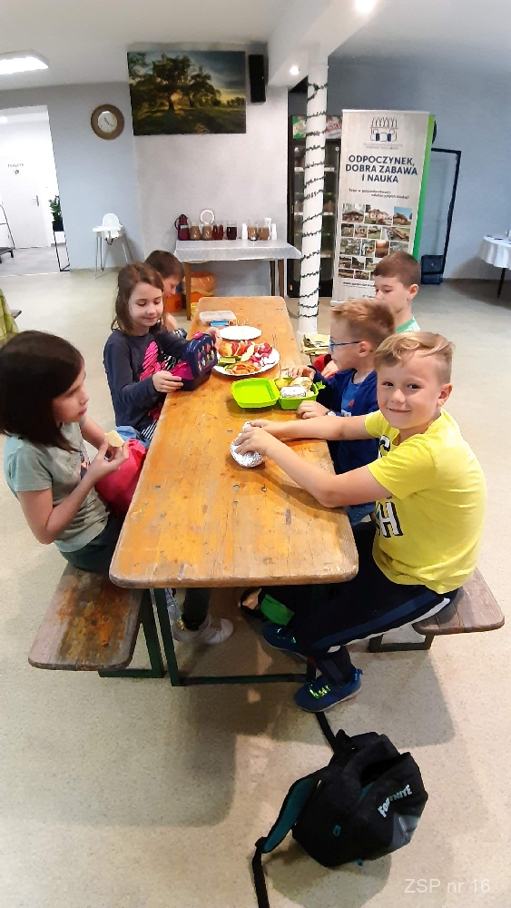 27.05 pogoda nie była najlepsza, ale i tak miło spędziliśmy czas na wycieczce do Gospodarstwa Agroturystycznego „Ranczo” w Proboszczowicach. Na początek zjedliśmy śniadanie, które wzbogacone zostało porcją warzyw i owoców. Było słodko i pysznie. Pani opowiedziała nam o wartościach ukrytych w owocach, warzywach i nabiale. Rozpoznawaliśmy ziarenka m.in. kaszy, lnu, grochu, jęczmienia, słonecznika – całkiem dobrze nam to zadanie wyszło.