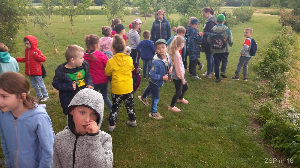 Następnie rozpoznawaliśmy w sadzie drzewa i krzewy – jabłoń, grusza, porzeczka, agrest… Deszcz nas nie oszczędzał, ale było wesoło. Na koniec wizyta u zwierząt i ich karmienie. Króliki, osiołki, owce były zainteresowane spotkaniem z nami – mieliśmy dla nich smakołyki. Dzień uważamy za udany:)